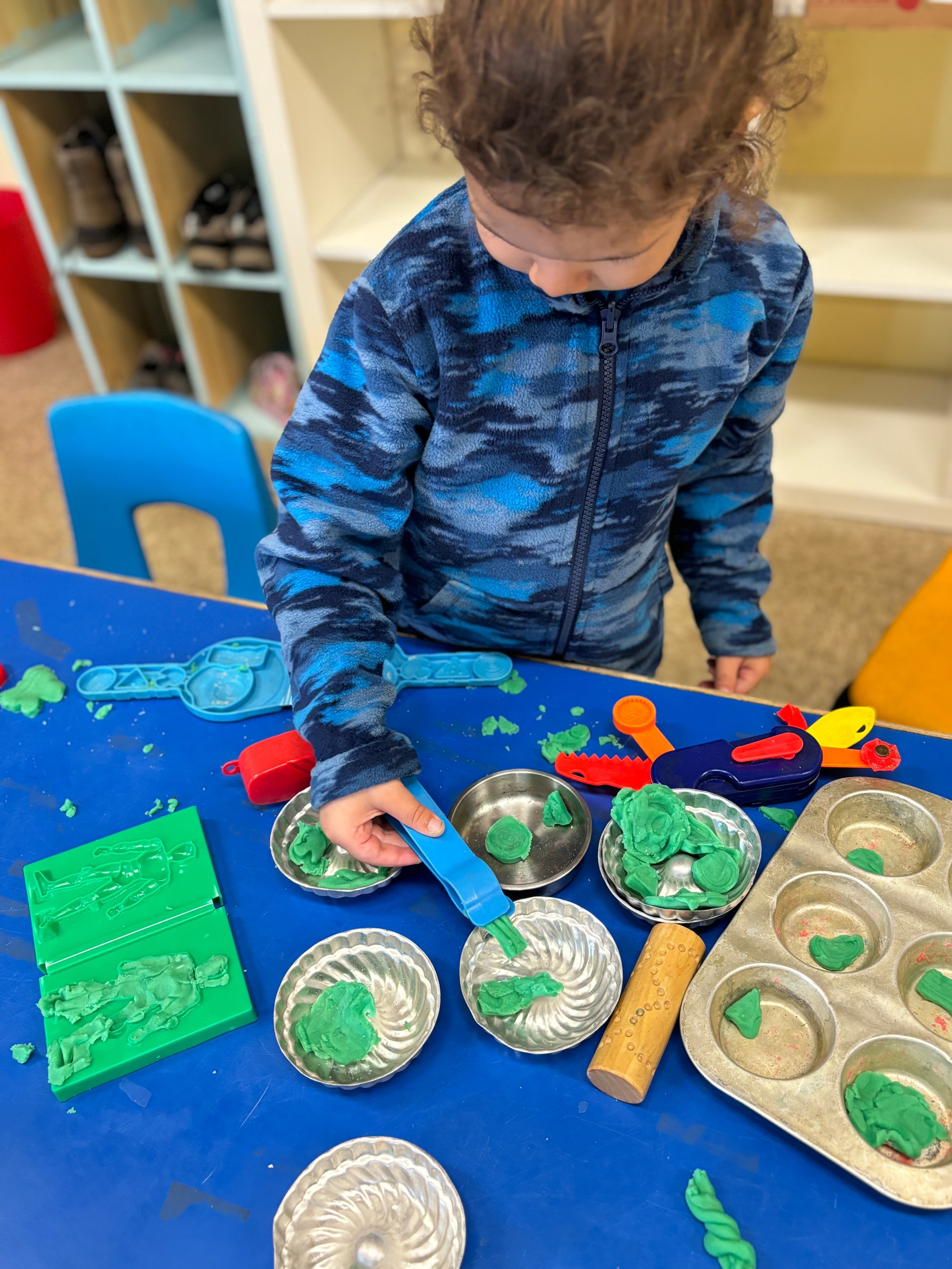 Children and toddlers can spend many minutes totally immersed in creating with the dough.