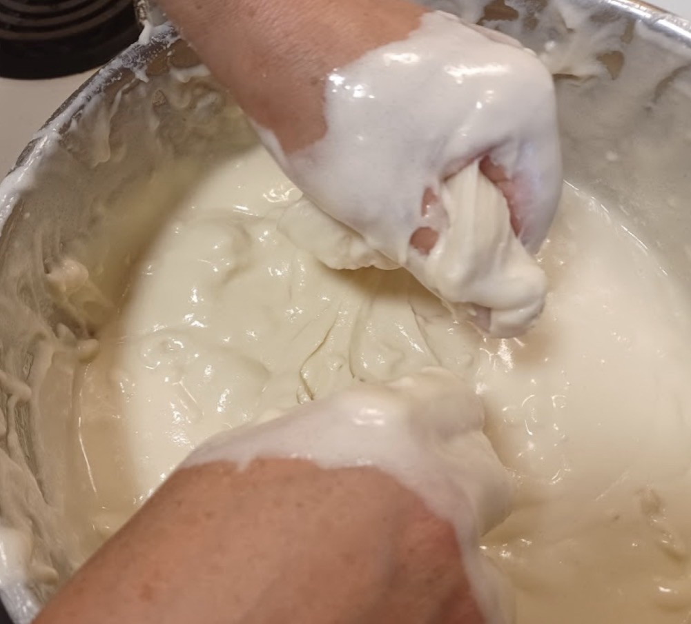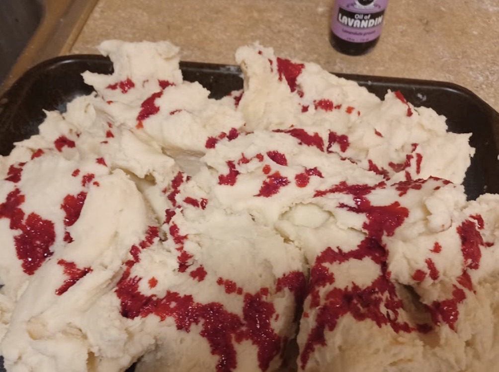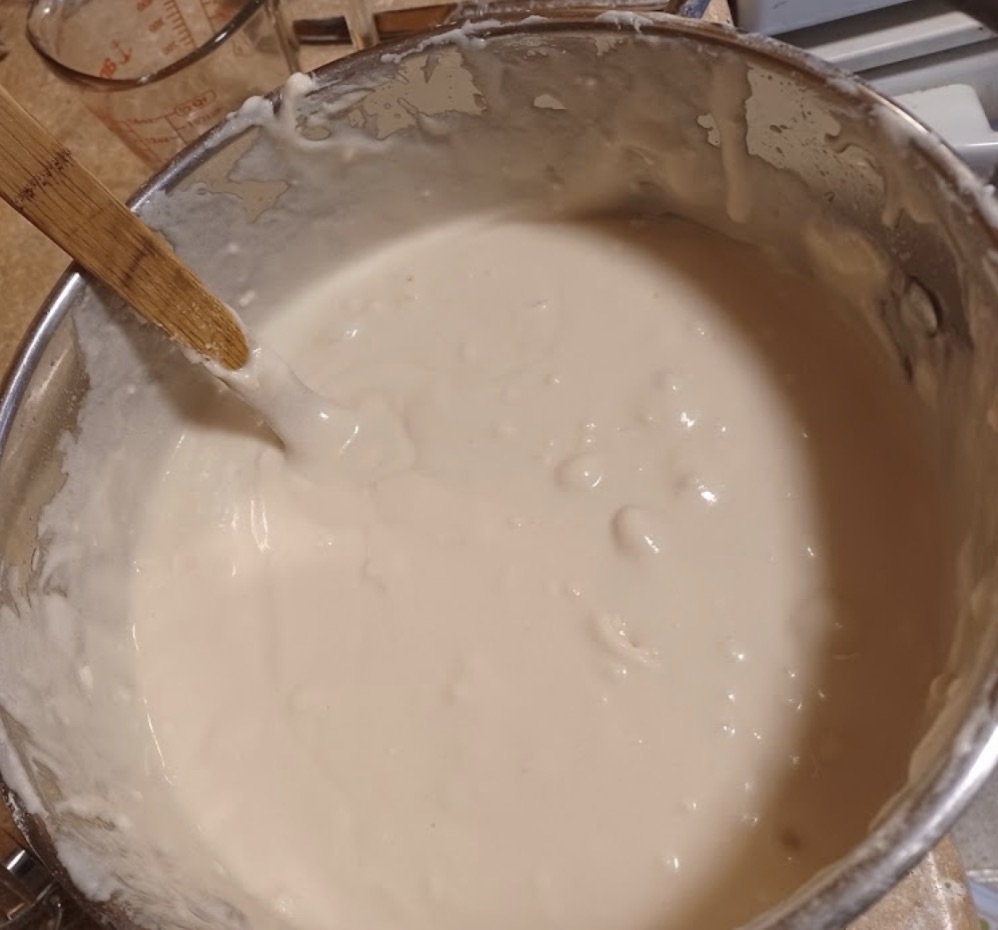 I think it gets to be a better consistency if you mix the wet ingredients in after the dry ingredients (saving the scent and color for after it’s off the heat). This started when my daughter wanted to help, and she likes to mix after each ingredient is added. I liked the result better than when I just dumped everything into the pot on the stove.