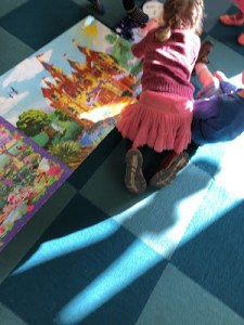 “But, how to we know if it’s night or day? This puzzle has a sunshine and this other one is nighttime.” After a moment of study, we decided that the nighttime puzzle was where we slept and the daytime puzzle was where we played.